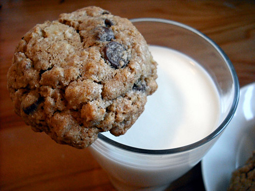 Итак, шоколад нарезаем небольшими квадратиками, по полсантиметра каждый. Масло перетираем вместе с сахарным песком, сюда же отправляем яйца и вымешиваем тщательно до однородности. Дальше к массе кладем мед и снова перемешиваем. Отправляем вяленые ягоды и шоколад, перемешиваем тесто. Кладем корицу и овсяные хлопья и вмешиваем их в массу.